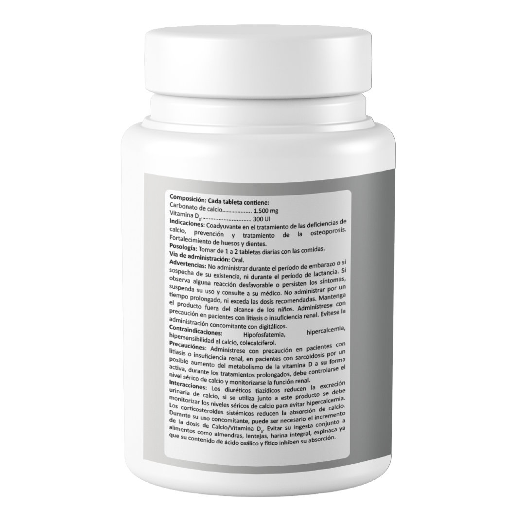Los beneficios de este producto son gracias a la combinación de Calcio 1.500 mg y Vitamina D 300 UI. Estos dos elementos trabajan juntos para aumentar la absorción y retención de calcio en el cuerpo, manteniendo concentraciones normales de calcio y fosfatos en la sangre. Esto resulta en una función muscular y ósea óptima.